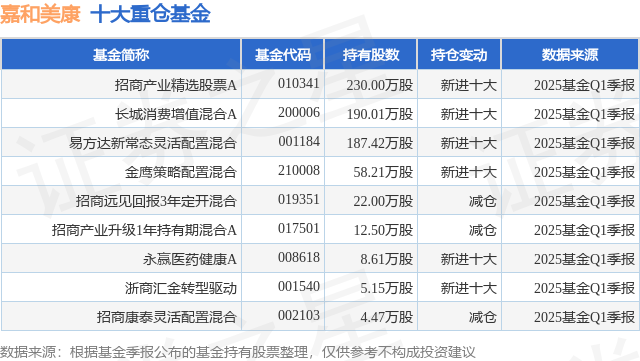 重仓嘉和美康的公募基金请见下表: