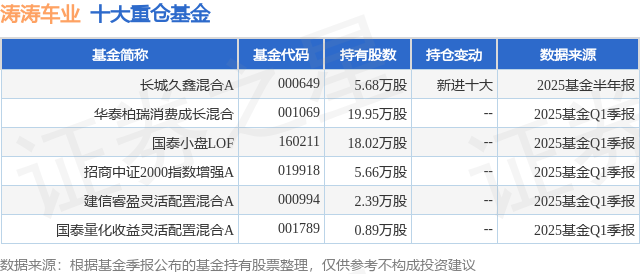 重仓涛涛车业的公募基金请见下表:
