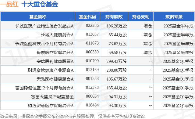 重仓一品红的前十大公募基金请见下表: