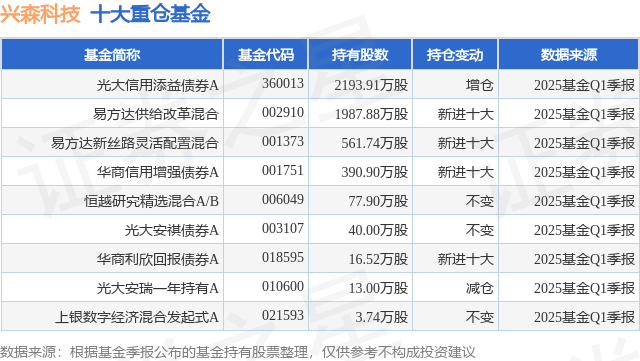 重仓兴森科技的公募基金请见下表:
