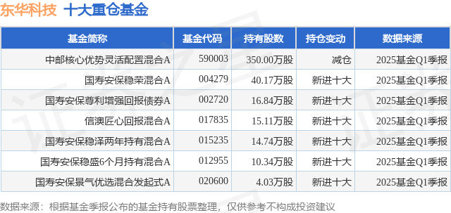 重仓东华科技的公募基金请见下表: