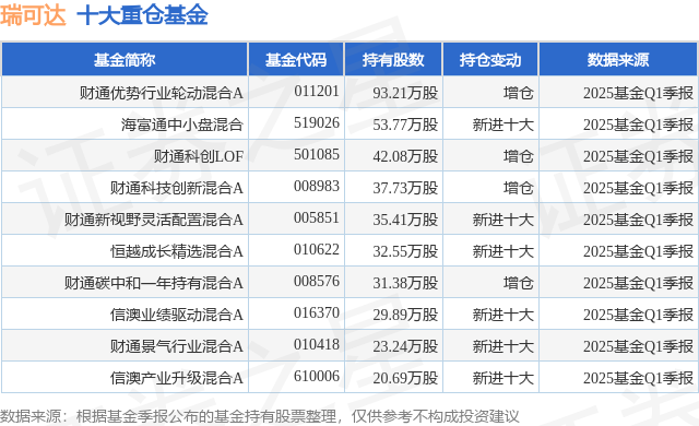 重仓瑞可达的前十大公募基金请见下表: