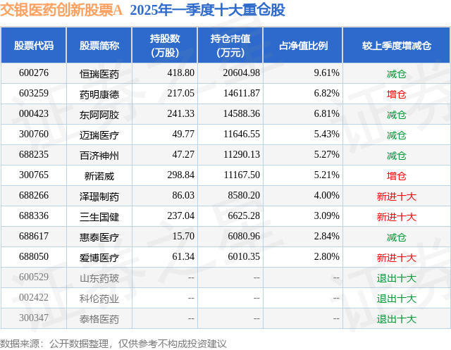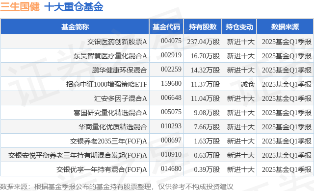 根据2025基金Q1季报公募基金重仓股数据,重仓该股的公募基金共10家,其中持有数量最多的公募基金为交银施罗德基金的交银医药创新股票A。交银医药创新股票A目前规模为20.39亿元,最新净值2.502(7月11日),较上一交易日上涨2.23%,近一年上涨26.26%。该公募基金现任基金经理为楼慧源。楼慧源在任的基金产品包括:交银启汇混合A,管理时间为2020年7月7日至今,期间收益率为-14.97%;交银悦信精选混合A,管理时间为2023年9月6日至今,期间收益率为3.24%。