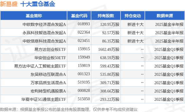根据2025基金半年报公募基金重仓股数据,重仓该股的公募基金共3家,其中持有数量最多的公募基金为中欧基金的中欧数字经济混合发起A。中欧数字经济混合发起A目前规模为0.45亿元,最新净值1.7501(7月14日),较上一交易日上涨1.18%,近一年上涨92.66%。该公募基金现任基金经理为冯炉丹。冯炉丹在任的基金产品包括:中欧新蓝筹混合A,管理时间为2021年10月14日至今,期间收益率为-12.95%;