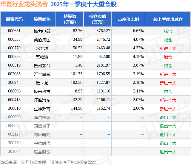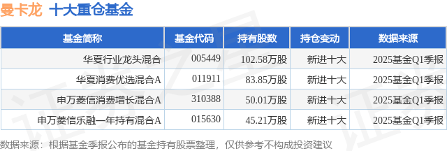 根据2025基金Q1季报公募基金重仓股数据,重仓该股的公募基金共4家,其中持有数量最多的公募基金为华夏基金的华夏行业龙头混合。华夏行业龙头混合目前规模为5.64亿元,最新净值1.175(7月14日),较上一交易日上涨0.26%,近一年上涨17.41%。该公募基金现任基金经理为季新星。季新星在任的基金产品包括:华夏内需驱动混合A,管理时间为2021年2月9日至今,期间收益率为-47.78%;华夏消费优选混合A,管理时间为2021年5月21日至今,期间收益率为-41.64%。