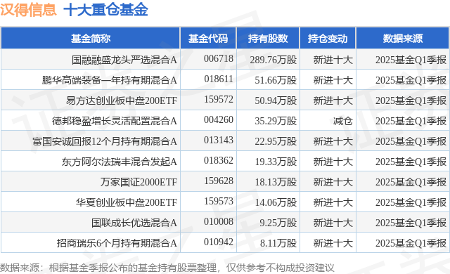 重仓汉得信息的前十大公募基金请见下表: