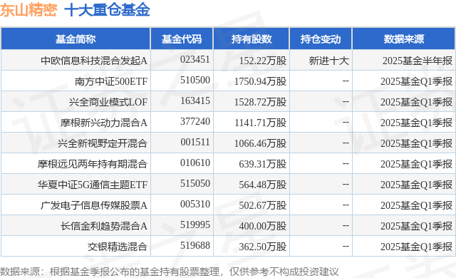 根据2025基金半年报公募基金重仓股数据,重仓该股的公募基金共1家,其中持有数量最多的公募基金为中欧基金的中欧信息科技混合发起A。中欧信息科技混合发起A目前规模为0.61亿元,最新净值1.1225(7月14日),较上一交易日上涨0.74%。该公募基金现任基金经理为杜厚良。