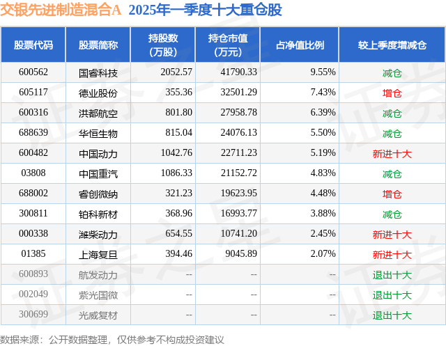 根据2025基金Q1季报公募基金重仓股数据,重仓该股的公募基金共5家,其中持有数量最多的公募基金为交银施罗德基金的交银先进制造混合A。交银先进制造混合A目前规模为43.06亿元,最新净值4.1926(7月14日),较上一交易日下跌0.09%,近一年上涨32.67%。该公募基金现任基金经理为刘鹏。刘鹏在任的基金产品包括:交银启明混合A,管理时间为2020年5月27日至今,期间收益率为43.59%;交银均衡成长一年混合A,管理时间为2021年2月1日至今,期间收益率为-1.79%。