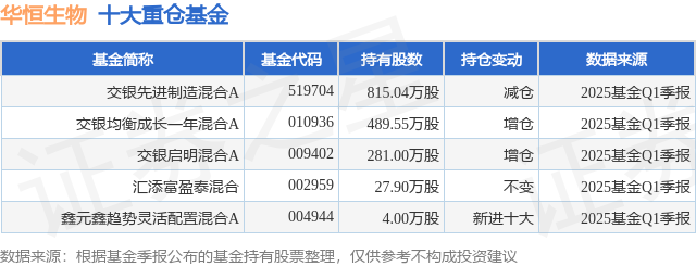 重仓华恒生物的公募基金请见下表: