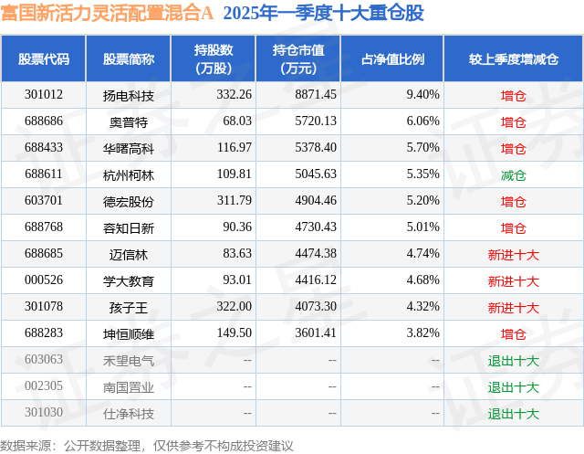 富国新活力灵活配置混合A的前十大重仓股如下: