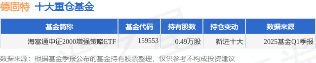 根据2025基金Q1季报公募基金重仓股数据,重仓该股的公募基金共1家,其中持有数量最多的公募基金为海富通基金的海富通中证2000增强策略ETF。海富通中证2000增强策略ETF目前规模为0.11亿元,最新净值1.517(7月15日),较上一交易日下跌0.45%,近一年上涨67.87%。该公募基金现任基金经理为李自悟。李自悟在任的基金产品包括:海富通中证500增强A,管理时间为2023年2月15日至今,期间收益率为-3.08%;海富通阿尔法对冲混合A,管理时间为2023年4月10日至今,期间收益率为-5.65%;海富通量化选股混合A,管理时间为2024年7月23日至今,期间收益率为16.83%。