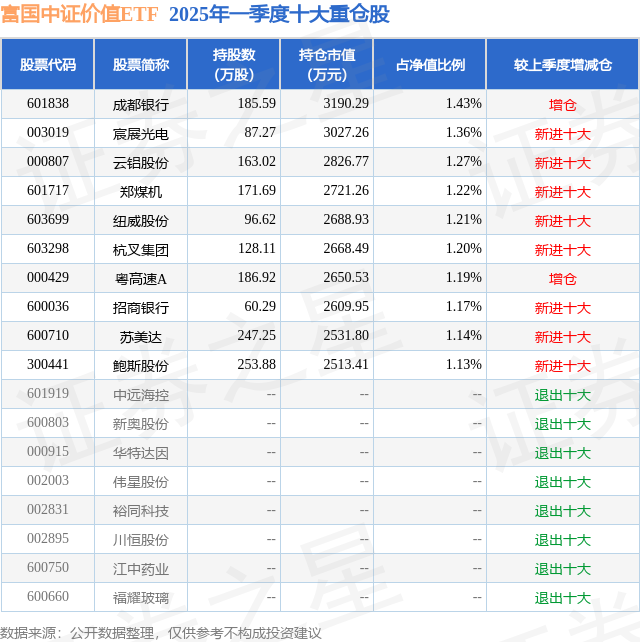 富国中证价值ETF的前十大重仓股如下: