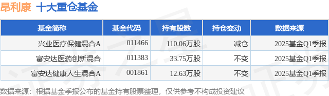 重仓昂利康的公募基金请见下表: