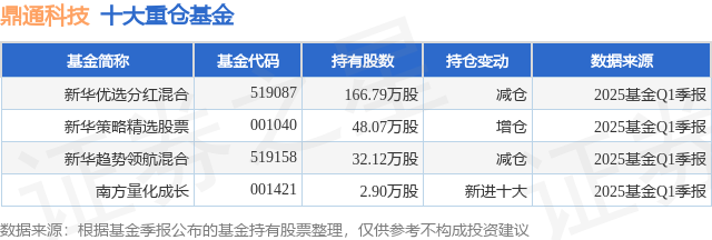 重仓鼎通科技的公募基金请见下表:
