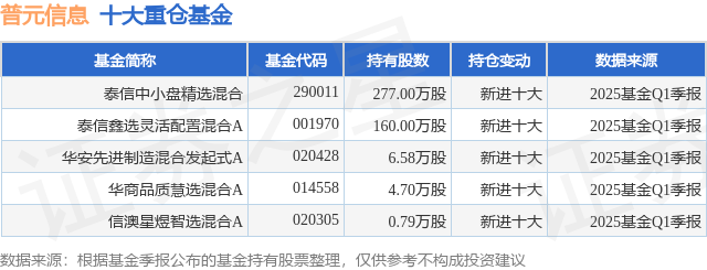 重仓普元信息的公募基金请见下表: