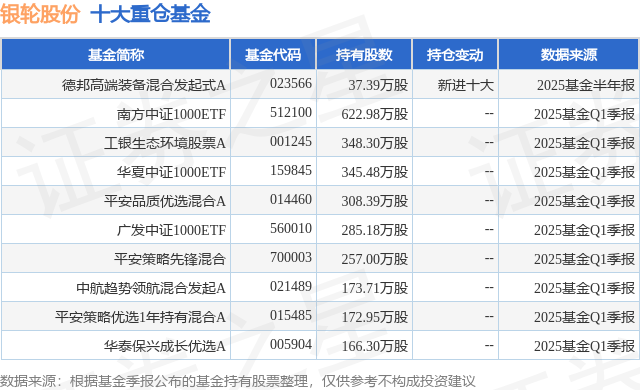 重仓银轮股份的前十大公募基金请见下表: