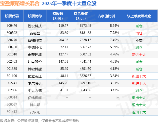 根据2025基金Q1季报公募基金重仓股数据,重仓该股的公募基金共5家,其中持有数量最多的公募基金为宝盈基金的宝盈策略增长混合。宝盈策略增长混合目前规模为10.51亿元,最新净值1.1389(7月16日),较上一交易日上涨0.18%,近一年上涨54.16%。该公募基金现任基金经理为容志能。容志能在任的基金产品包括:宝盈转型动力混合A,管理时间为2023年3月17日至今,期间收益率为64.27%;宝盈国家安全沪港深股票A,管理时间为2023年3月17日至今,期间收益率为2.67%;宝盈创新驱动股票A,管理时间为2023年4月15日至今,期间收益率为27.53%;宝盈科技30混合,管理时间为2024年12月24日至今,期间收益率为25.71%。