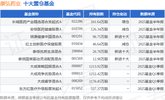 根据2025基金半年报公募基金重仓股数据,重仓该股的公募基金共6家,其中持有数量最多的公募基金为长城基金的长城医药产业精选混合发起式A。长城医药产业精选混合发起式A目前规模为2.04亿元,最新净值2.0538(7月17日),较上一交易日上涨5.31%。该公募基金现任基金经理为梁福睿。