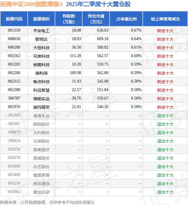 招商中证2000指数增强A的前十大重仓股如下:
