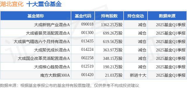 根据2025基金Q1季报公募基金重仓股数据,重仓该股的公募基金共7家,其中持有数量最多的公募基金为大成基金的大成新锐产业混合A。大成新锐产业混合A目前规模为49.36亿元,最新净值5.63(7月17日),较上一交易日上涨0.25%,近一年上涨5.71%。该公募基金现任基金经理为韩创。韩创在任的基金产品包括:大成睿景灵活配置混合A,管理时间为2020年1月2日至今,期间收益率为176.35%;大成国企改革灵活配置混合A,管理时间为2021年1月13日至今,期间收益率为71.34%;大成产业趋势混合A,管理时间为2021年2月9日至今,期间收益率为68.83%。