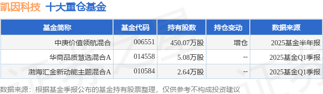 重仓凯因科技的公募基金请见下表: