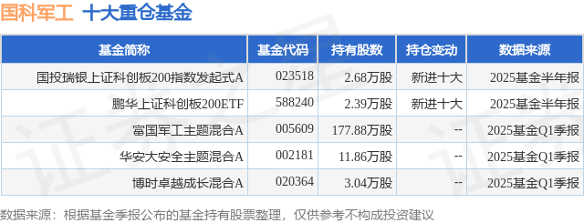 重仓国科军工的公募基金请见下表: