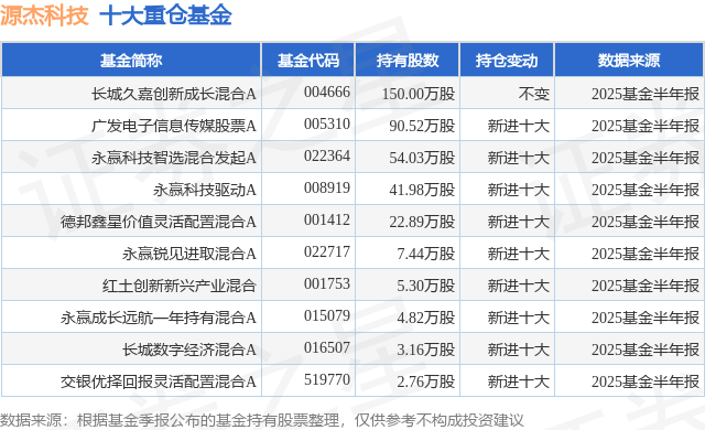 重仓源杰科技的前十大公募基金请见下表: