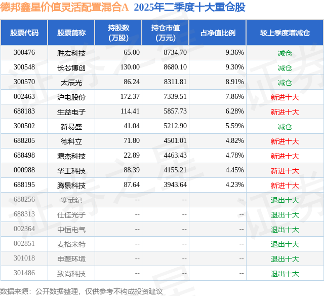 德邦鑫星价值灵活配置混合A的前十大重仓股如下: