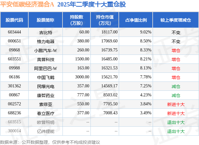 根据2025基金半年报公募基金重仓股数据,重仓该股的公募基金共2家,其中持有数量最多的公募基金为平安基金的平安低碳经济混合A。平安低碳经济混合A目前规模为14.27亿元,最新净值1.0665(7月18日),较上一交易日上涨0.1%,近一年上涨32.55%。该公募基金现任基金经理为何杰。何杰在任的基金产品包括:平安价值领航混合A,管理时间为2022年11月23日至今,期间收益率为11.55%;平安价值远见混合A,管理时间为2024年2月6日至今,期间收益率为32.82%;平安估值优势混合A,管理时间为2024年12月31日至今,期间收益率为22.2%。