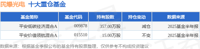 重仓民爆光电的公募基金请见下表: