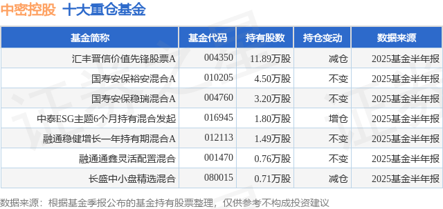 根据2025基金半年报公募基金重仓股数据,重仓该股的公募基金共7家,其中持有数量最多的公募基金为汇丰晋信基金的汇丰晋信价值先锋股票A。汇丰晋信价值先锋股票A目前规模为2.27亿元,最新净值1.9273(7月18日),较上一交易日上涨0.06%,近一年上涨29.1%。该公募基金现任基金经理为吴培文。吴培文在任的基金产品包括:汇丰晋信珠三角区域发展混合,管理时间为2017年6月2日至今,期间收益率为114.2%;汇丰晋信策略优选混合A,管理时间为2022年9月14日至今,期间收益率为29.43%;汇丰晋信龙头优势混合A,管理时间为2022年9月27日至今,期间收益率为-7.47%。