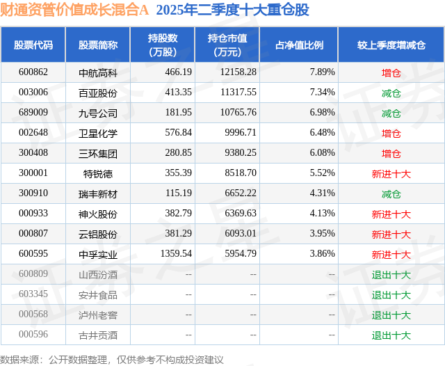 根据2025基金半年报公募基金重仓股数据,重仓该股的公募基金共38家,其中持有数量最多的公募基金为财通资管的财通资管价值成长混合A。财通资管价值成长混合A目前规模为15.82亿元,最新净值2.0308(7月18日),较上一交易日上涨0.15%,近一年上涨25.67%。该公募基金现任基金经理为姜永明 李响。李响在任的基金产品包括:财通资管宸瑞一年持有混合A,管理时间为2025年5月21日至今,期间收益率为0.63%;财通资管价值精选一年持有混合A,管理时间为2025年6月23日至今,期间收益率为5.69%;财通资管价值发现混合A,管理时间为2025年7月15日至今,期间收益率为0.17%。姜永明在任的基金产品包括:财通资管价值发现混合A,管理时间为2020年3月23日至今,期间收益率为50.61%;财通资管宸瑞一年持有混合A,管理时间为2021年1月20日至今,期间收益率为-19.71%;财通资管价值精选一年持有混合A,管理时间为2021年5月25日至今,期间收益率为-26.42%。