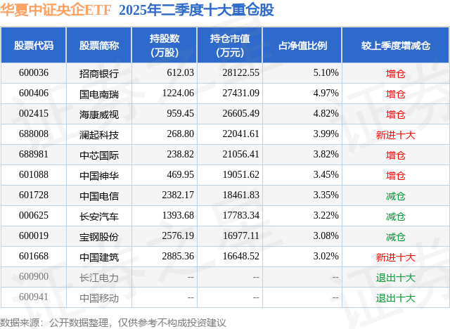 根据2025基金半年报公募基金重仓股数据,重仓该股的公募基金共60家,其中持有数量最多的公募基金为华夏基金的华夏中证央企ETF。华夏中证央企ETF目前规模为55.18亿元,最新净值1.3507(7月18日),较上一交易日上涨0.5%,近一年上涨5.32%。该公募基金现任基金经理为荣膺 司帆。荣膺在任的基金产品包括:华夏中证500ETF联接A,管理时间为2016年10月20日至今,期间收益率为7.34%;华夏中证500ETF,管理时间为2016年10月20日至今,期间收益率为7.75%;华夏创业板价值ETF,管理时间为2019年6月14日至今,期间收益率为44.61%。司帆在任的基金产品包括:华夏中证全指证券公司ETF,管理时间为2021年7月6日至今,期间收益率为14.72%;MSCI中国A股国际通联接A,管理时间为2021年10月21日至今,期间收益率为-8.55%;华夏创业板价值ETF联接A,管理时间为2021年10月21日至今,期间收益率为-20.96%;华夏MSCIA股国际通ETF,管理时间为2021年10月21日至今,期间收益率为-8.52%。