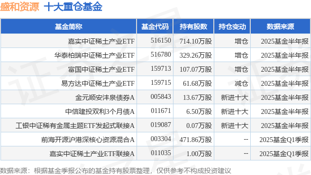 根据2025基金半年报公募基金重仓股数据,重仓该股的公募基金共7家,其中持有数量最多的公募基金为嘉实基金的嘉实中证稀土产业ETF。嘉实中证稀土产业ETF目前规模为24.27亿元,最新净值1.3185(7月18日),较上一交易日上涨3.62%,近一年上涨58.8%。该公募基金现任基金经理为田光远。田光远在任的基金产品包括:嘉实中证软件服务ETF,管理时间为2021年6月4日至今,期间收益率为-19.96%;嘉实中证电池主题ETF,管理时间为2021年7月13日至今,期间收益率为-47.48%;嘉实中证稀土产业ETF联接A,管理时间为2021年8月3日至今,期间收益率为-7.19%。