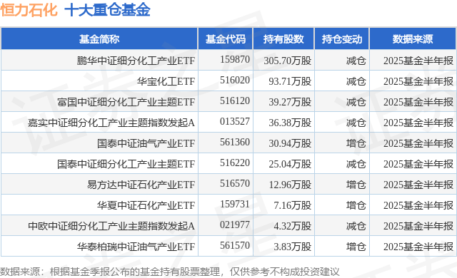 重仓恒力石化的前十大公募基金请见下表: