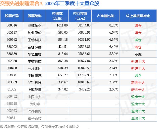 交银先进制造混合A的前十大重仓股如下: