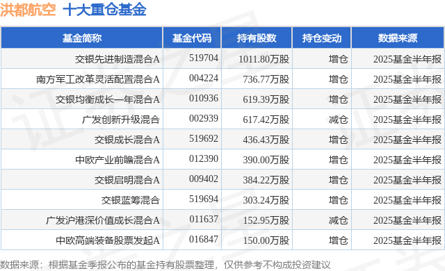 重仓洪都航空的前十大公募基金请见下表: