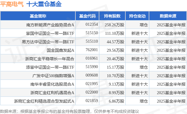 根据2025基金半年报公募基金重仓股数据,重仓该股的公募基金共14家,其中持有数量最多的公募基金为南方基金的南方新能源产业趋势混合A。南方新能源产业趋势混合A目前规模为6.63亿元,最新净值0.6079(7月18日),较上一交易日上涨0.23%,近一年上涨7.76%。该公募基金现任基金经理为熊琳。