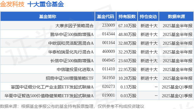 重仓金发科技的公募基金请见下表: