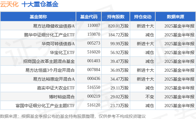 重仓云天化的前十大公募基金请见下表: