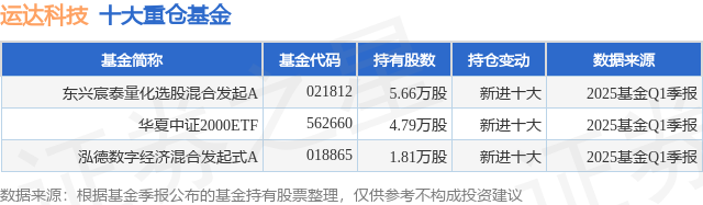 重仓运达科技的公募基金请见下表: