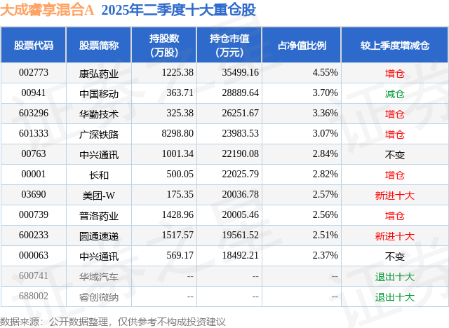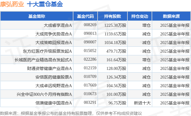 根据2025基金半年报公募基金重仓股数据,重仓该股的公募基金共24家,其中持有数量最多的公募基金为大成基金的大成睿享混合A。大成睿享混合A目前规模为51.94亿元,最新净值1.6819(7月21日),较上一交易日上涨0.65%,近一年上涨24.52%。该公募基金现任基金经理为徐彦。徐彦在任的基金产品包括:大成竞争优势混合A,管理时间为2019年12月30日至今,期间收益率为115.95%;大成策略回报混合A,管理时间为2020年3月20日至今,期间收益率为111.67%;大成投资严选六月持有混合A,管理时间为2021年7月16日至今,期间收益率为36.52%。