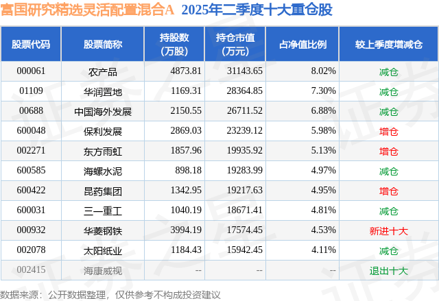 根据2025基金半年报公募基金重仓股数据,重仓该股的公募基金共24家,其中持有数量最多的公募基金为富国基金的富国研究精选灵活配置混合A。富国研究精选灵活配置混合A目前规模为6.99亿元,最新净值2.732(7月21日),较上一交易日上涨3.09%,近一年上涨10.03%。该公募基金现任基金经理为刘莉莉。刘莉莉在任的基金产品包括:富国价值发现混合A,管理时间为2024年2月6日至今,期间收益率为10.97%。
