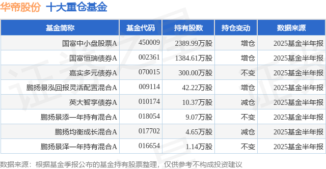 重仓华帝股份的公募基金请见下表: