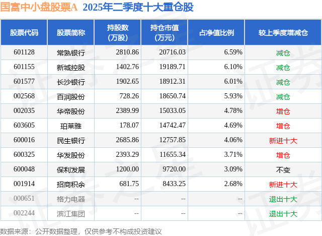 根据2025基金半年报公募基金重仓股数据,重仓该股的公募基金共8家,其中持有数量最多的公募基金为国海富兰克林基金的国富中小盘股票A。国富中小盘股票A目前规模为30.17亿元,最新净值2.6093(7月21日),较上一交易日上涨0.56%,近一年上涨20.34%。该公募基金现任基金经理为赵晓东。赵晓东在任的基金产品包括:国富弹性市值混合A,管理时间为2014年12月19日至今,期间收益率为206.0%;国富恒瑞债券A,管理时间为2016年2月4日至今,期间收益率为64.75%;国富基本面优选混合A,管理时间为2020年2月13日至今,期间收益率为77.59%。