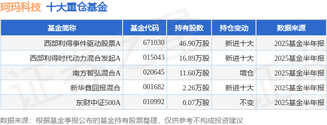 根据2025基金半年报公募基金重仓股数据,重仓该股的公募基金共5家,其中持有数量最多的公募基金为西部利得基金的西部利得事件驱动股票A。西部利得事件驱动股票A目前规模为4.75亿元,最新净值2.6678(7月23日),较上一交易日上涨0.58%,近一年上涨48.97%。该公募基金现任基金经理为张昌平。张昌平在任的基金产品包括:西部利得时代动力混合发起A,管理时间为2022年5月31日至今,期间收益率为8.46%。