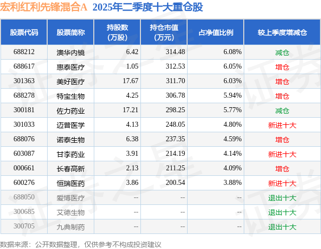 根据2025基金Q1季报公募基金重仓股数据,重仓该股的公募基金共2家,其中持有数量最多的公募基金为宏利基金的宏利红利先锋混合A。宏利红利先锋混合A目前规模为0.51亿元,最新净值0.995(7月23日),较上一交易日上涨0.3%,近一年上涨12.18%。该公募基金现任基金经理为周笑雯。周笑雯在任的基金产品包括:宏利医药健康混合发起A,管理时间为2023年12月26日至今,期间收益率为9.13%。
