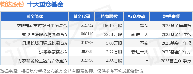 重仓钧达股份的公募基金请见下表: