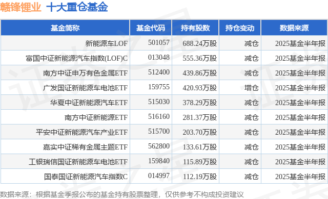 重仓赣锋锂业的前十大公募基金请见下表: