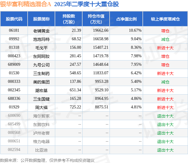 重仓潮宏基的前十大公募基金请见下表: